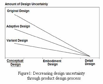 As shown in Fig. 1, design uncertainty is the largest for entirely original designs and decreases during design [[5]].