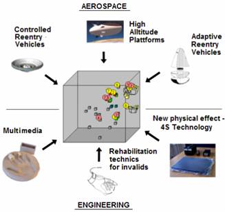 Using the methodology, different engineering systems, mostly in the area of Aeronautics, Astronautics, and Ecology, have been studied [[12],[13],[14]] (Fig.4). Fields of generated variants for Reentry vehicles [[15],[16]] (Fig.5) is given below (s. synergistic effect in the Table 2).